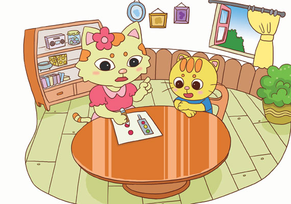 这天早晨,太阳刚刚露头,妈妈就出家门买菜去了。临行前,她对大眼猫说:“千万别单独过马路,车辆太多!”