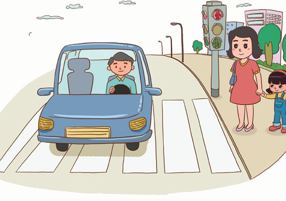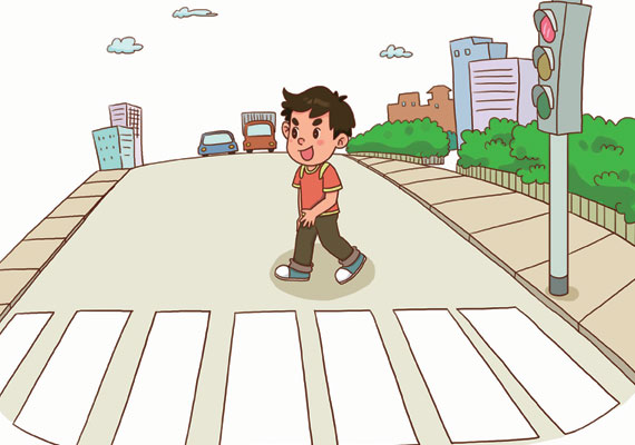 3.男孩过马路时远离斑马线,走到了马路中间。