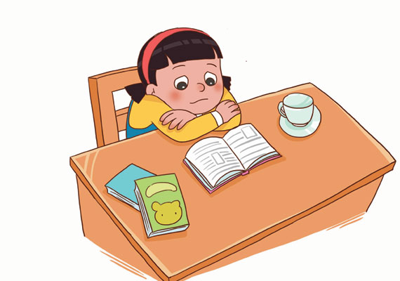 2.趴在桌上画画。
