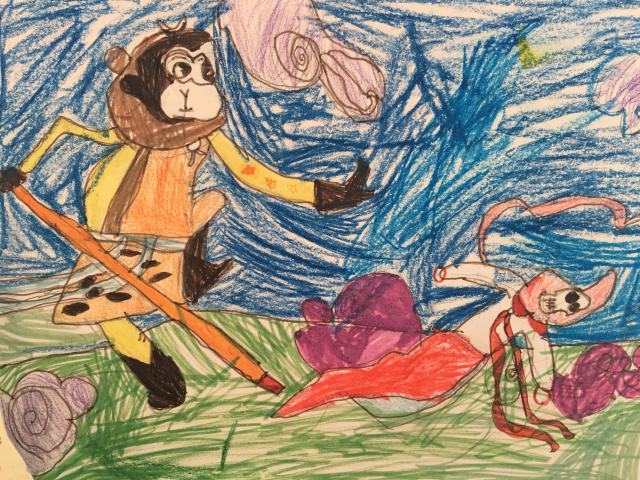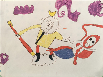 - 亲子阅读之后,孩子们还用绘画等形式,保留和积累了自己对三打白骨精的理解和认识。