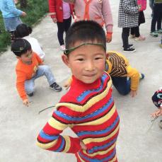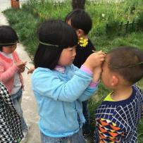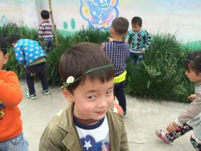 草环编好了,我们还想更美一点,夹上一朵野花吧!是不是更好看了呢?一场与草的亲密接触,我们都来秀一下!孩子们美美的照片都布置在教室的墙面上。