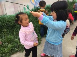 自由活动时,陶晓浪尖起嗓子、踮起脚尖、随手拿起一只铅笔、大声喝道:“妖精!打死你!”贾天昊配合着他,应声倒下。其他围观的小朋友哈哈大笑。陶晓浪看大家都在看着他表演,眯着眼睛,头昂的高高的说:“我把白骨精打死了,谁来做我师傅”?一声下去,没有人应他。他气鼓鼓的说:“不演了!我妈妈说三打白骨精里面的师傅很笨,不知道我打死的是妖怪”。孩子们眼睛睁的大大的看着陶晓浪。