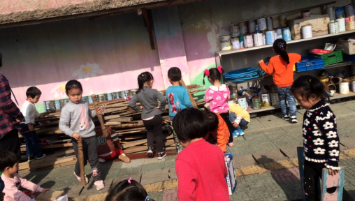 教师们的观点归纳:我们收集的这些材料没有能充分激发孩子游戏的兴趣,对孩子游戏中的主动发展支持不足,只能说是废旧材料,还不能作为幼儿的开放性材料。分析反思后我们总结:不要给这些材料固定的区域,真正把使用材料游戏的自主权交给孩子;所有收集的材料可以幼儿园集中存放在操场的材料资源小屋里,方便孩子自由取放,看看这些材料能否激发孩子们的好奇心、想象力和创造力。