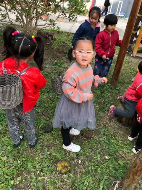 自主点心结束后,孩子们开始进行户外自主游戏。今天户外农家小院里很热闹,看到优优背着个篮子,好像在拔菜,曦曦也背着篮子跟她一起在拔菜。有的小朋友在做饭,有的小朋友在洗菜,还有的小朋友背篮子在拔菜。不一会儿,优优的篮子里装满了菜,她跟贞贞说:“我们把菜先送回去,然后再来拔吧。”