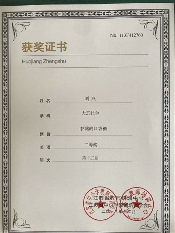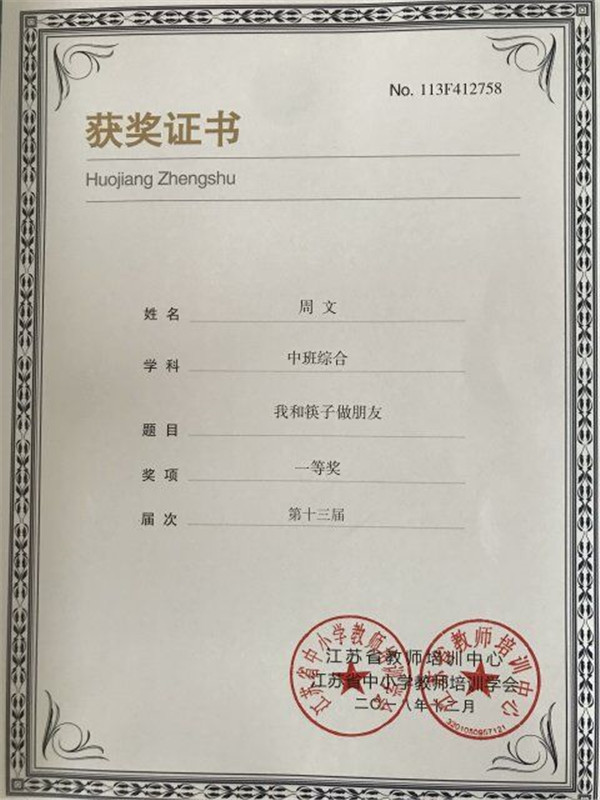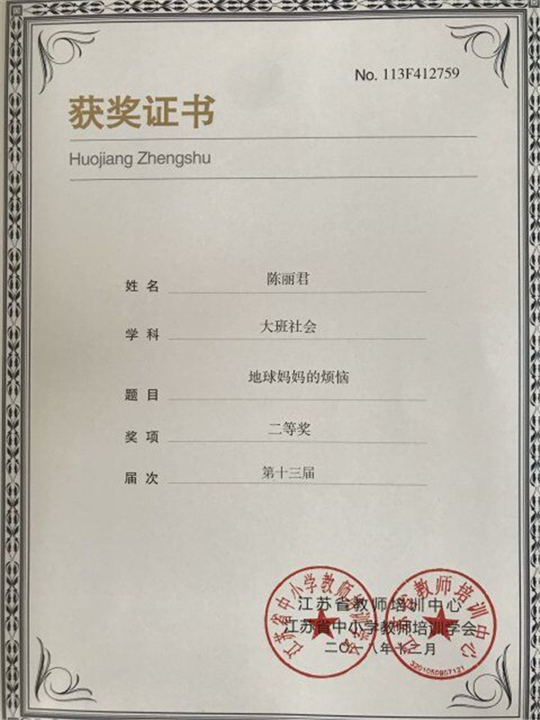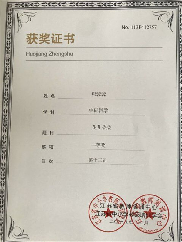 曲塘镇顾庄幼儿园“童心”课程优秀教案及获奖证书