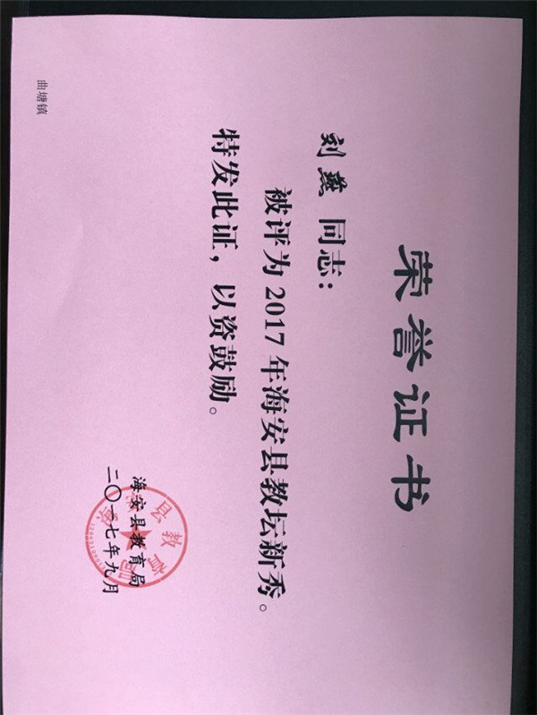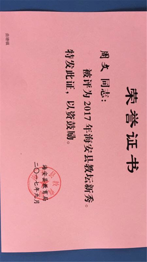 曲塘镇顾庄幼儿园市骨干教师、优秀教师