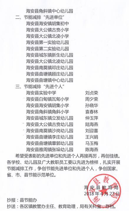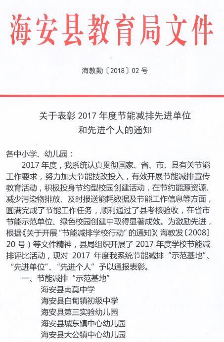 201804 | 海安市节能减排先进单位 |