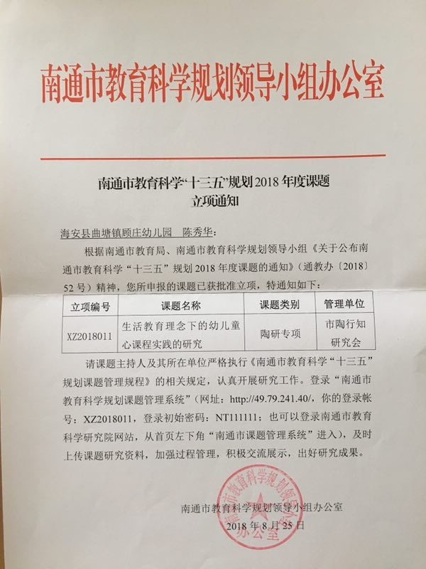 201611 | 《生活教育理念下幼儿园童心课程游戏化的实践研究》省级十三五课题立项 |