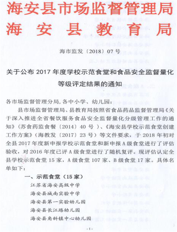 201801 | 海安市学校示范食堂 |