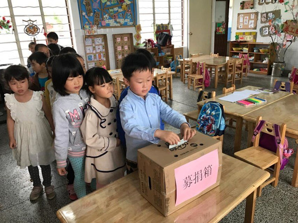 最后,幼儿园组织各班孩子开展“我为残疾孩子献爱心”捐款活动。宝贝们带来了自己的零花钱,五元、十元、二十元……无论捐款的数额是多少,心都是一样真诚,每一分钱都饱含爱的力量。
