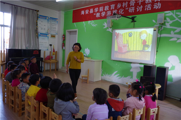 本次活动分为集体活动观摩及小组讨论两个环节。活动由培育站导师顾晓梅园长的主持,参与活动活动的还有曲塘镇各幼儿园园长,分管教学的副园长及各幼儿园骨干教师。集体活动观摩在中心园幼儿园骨干教师马国美老师组织的大班美术活动《打喷嚏》中拉开了序幕,活动中马老师以夸张的动作、精美的图画、精彩的游戏,将孩子们带入了绘本情境之中,使他们自主愉悦地参与其中;第二节集体活动是曲塘镇顾庄幼儿园园长陈秀华展示的大班语言活动《永别了,袜子》,陈园长温情地讲述、睿智的教学机智、极富挑战的游戏,让孩子们在学中玩,玩中学,体验了绘本活动游戏化的乐趣。