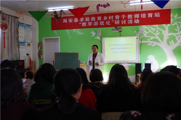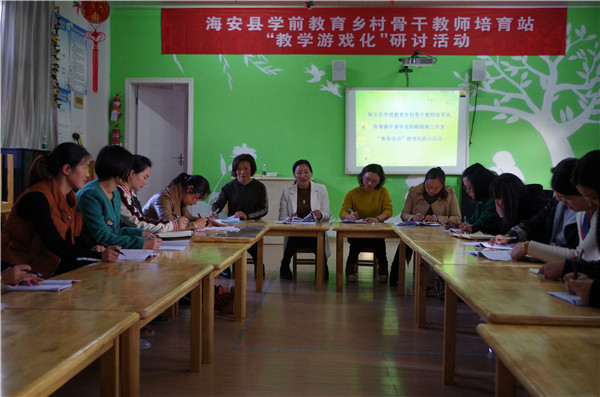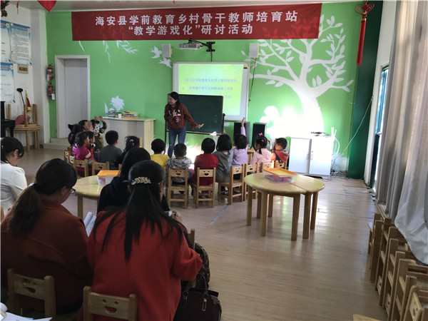 曲水流连,稻香满园, 11月9日下午,曲塘镇顾庄幼儿园迎来了海安县学前教育乡村骨干教师培育站的导师和学员以及曲塘镇中青年名师顾晓梅工作室的全体学员,一起邂逅了一场深秋的约会——“集体活动”游戏化研讨活动。