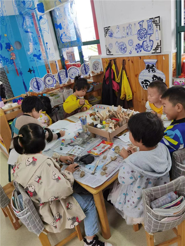 大班环境以传统文化为载体,更多的体现了幼儿学习、探究的过程,让幼儿真正成为了环境的小主人。老师们聚焦儿童,引领孩子们亲自动手布置环境,表征、共享、学习,逐渐让环境“灵动”起来,浸润中深度学习,幸福发展。