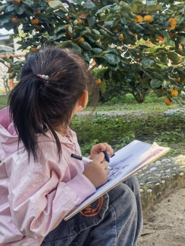 陈鹤琴先生说:“大自然是我们最好的老师,大自然充满了活教材,大自然是我们的教科书。”在柿子成熟的季节,为了让孩子们亲近自然、热爱自然,培养孩子们的观察能力、绘画能力和体会写生的快乐。曲塘镇顾庄幼儿园中班的孩子们10月29日上午,踏着晨曦的朝阳,闻着扑鼻的桂香,看着落叶的舞姿,走进了秋的怀抱,奔赴着一场与秋的约“绘”。