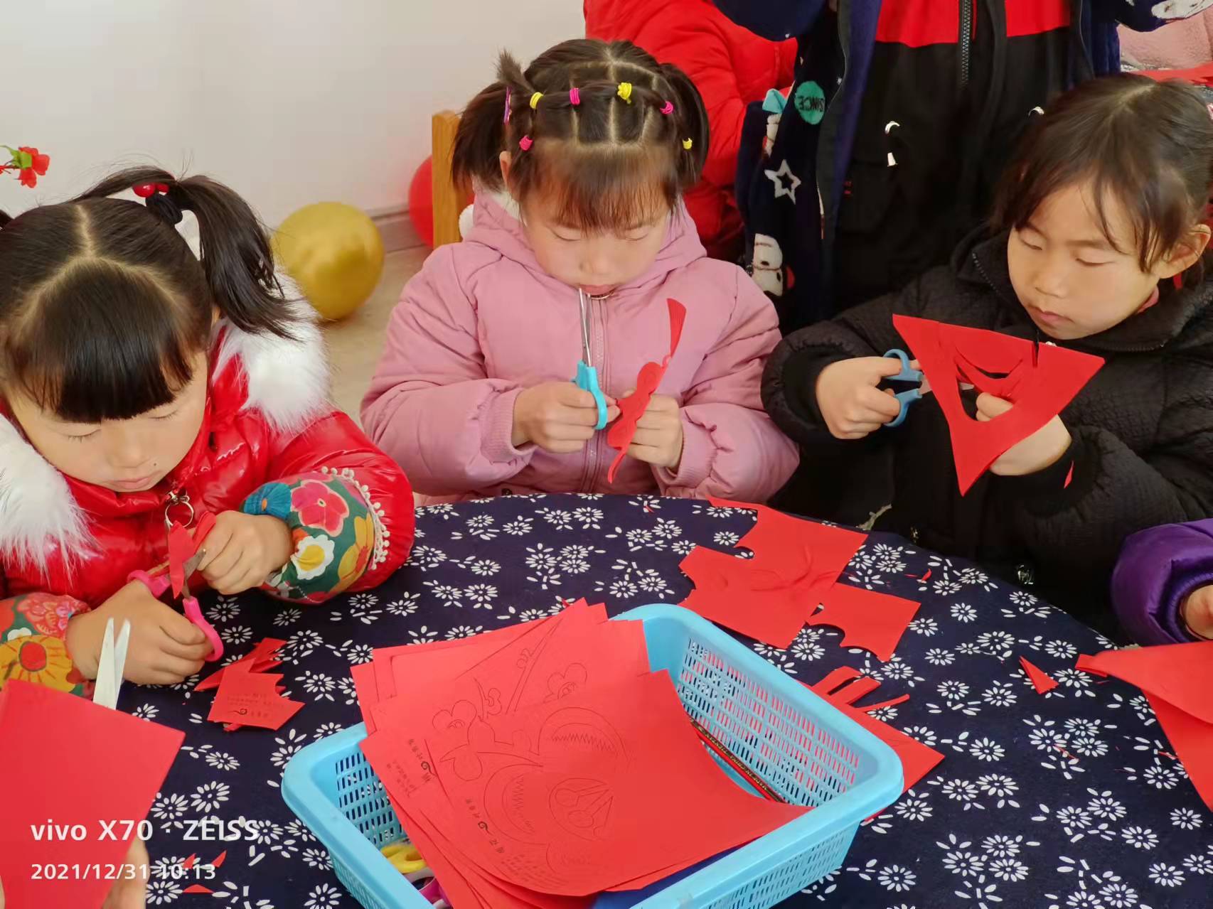 新年剪窗花是我国的传统习俗。美美的窗花寓意着新的一年红红火火。12月31日,为迎接2022年的到来,曲塘镇顾庄幼儿园开展幼儿剪窗花活动。