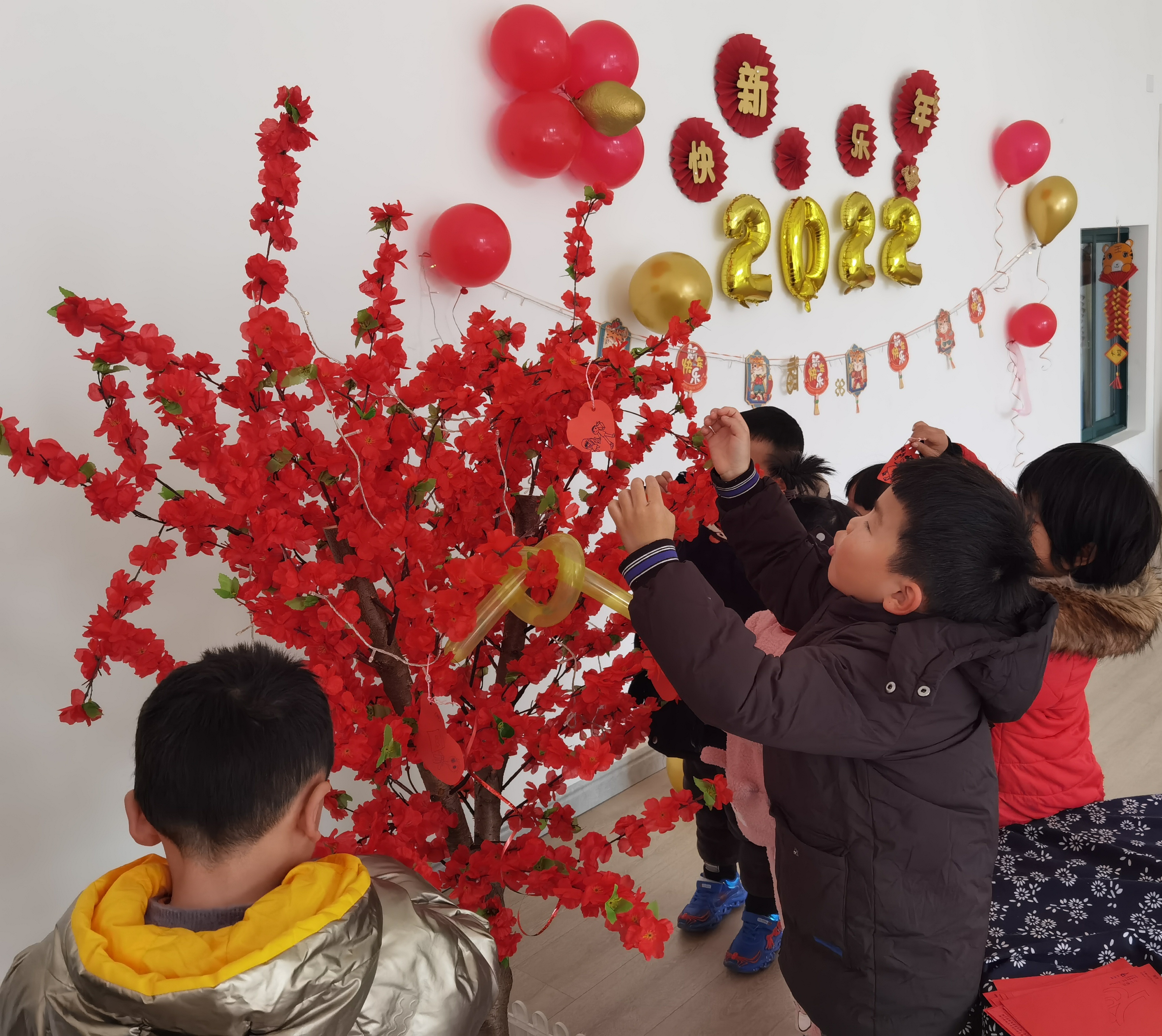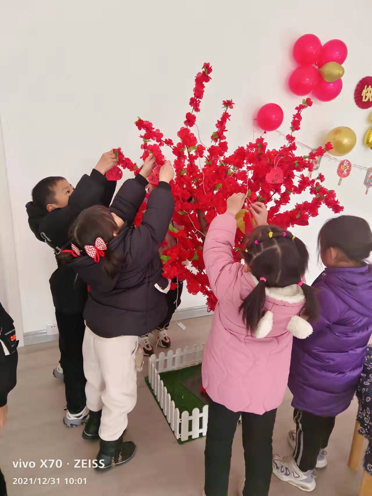 心愿卡制作完毕,孩子们一起将心愿卡挂到了幼儿园准备的具有浓浓年味的新年树上。他们虔诚地挂着属于自己独一无二的新年心愿卡。一个个满怀期待的盼望着自己的新年心愿在即将到来的2022年能够实现。