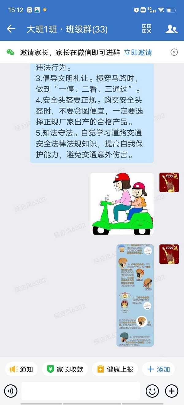 幼儿园通过张贴宣传海报、发放倡议书、家长群宣传等形式,告知每一位家长骑行电动自行车时佩戴安全头盔的重要性。教师和保安在园门口站岗时,也对没有戴头盔的家长进行耐心劝说。同时,幼儿园还利用国旗下讲话的教育时机,向幼儿普及骑乘电瓶车戴头盔的重要性。