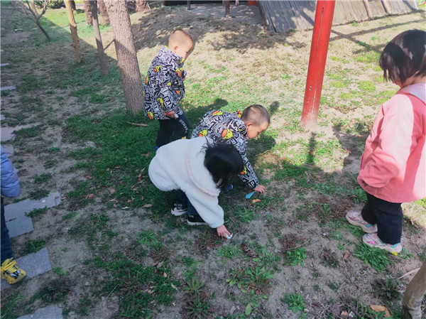 小班幼儿则漫步在幼儿园四周,寻找幼儿园里的“树朋友”,用眼晴录下自己的发现,有的用小手比画着植物的模样。他们在观察着幼儿园各种树的形态,用自己喜欢的方式去表达对树的认识,真正和“树”做朋友。