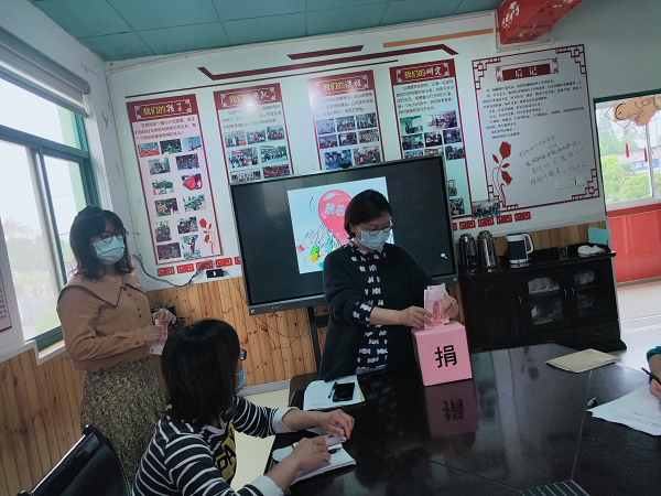 活动中,陈园长首先向全体教师发出“慈善一日捐”的倡议,并阐述了“慈善一日捐”活动的重要意思,号召全体教职工捐出爱心。全体积极响应,纷纷捐献出爱心,随后,在陈园长的带领下,教师将一个个爱心投进捐款箱里,真诚的爱心在教师们的手中传递,浓浓的爱意霎时间在幼儿园里荡漾。本次募捐活动,虽然钱数不多,但珍贵的是一颗颗如金子般只求付出、不求回报的爱心。让我们用爱心点燃一份希望,用热情温暖一份天空,用实际行动帮助有困难的小伙伴,共建美好家园。